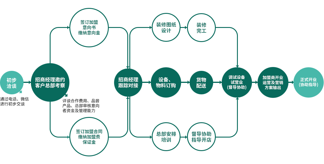 公司總部下設(shè)店鋪督導,一年365天,天天巡回在各地代理區(qū)域,協(xié)助各地投資者進行渠道擴充、店鋪管理,提高經(jīng)營水平,提升業(yè)績